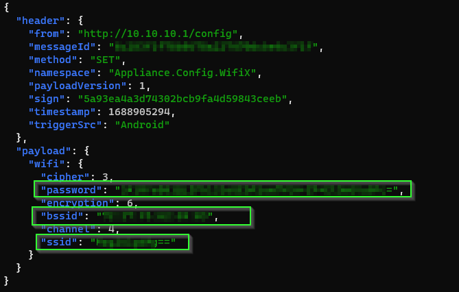 We see the BSSID of the home Wifi router is being sent from the embedded plug device to the MQTT server in AWS (Japan).