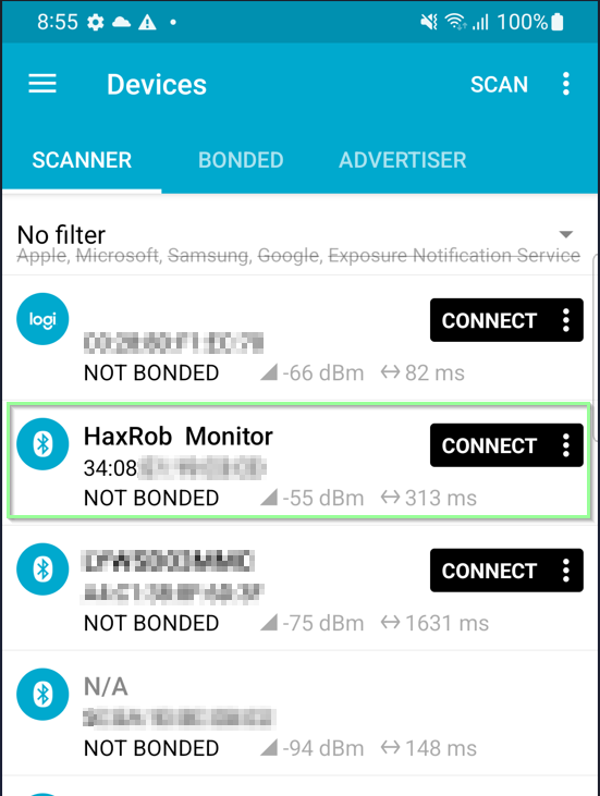 After reflashing using Smart RF Studio with the CC-DEBUGGER, we can see the new device name being advertised. Here [nRF Connect ]](https://play.google.com/store/apps/details?id=no.nordicsemi.android.mcp) is being used as a BLE scanner: