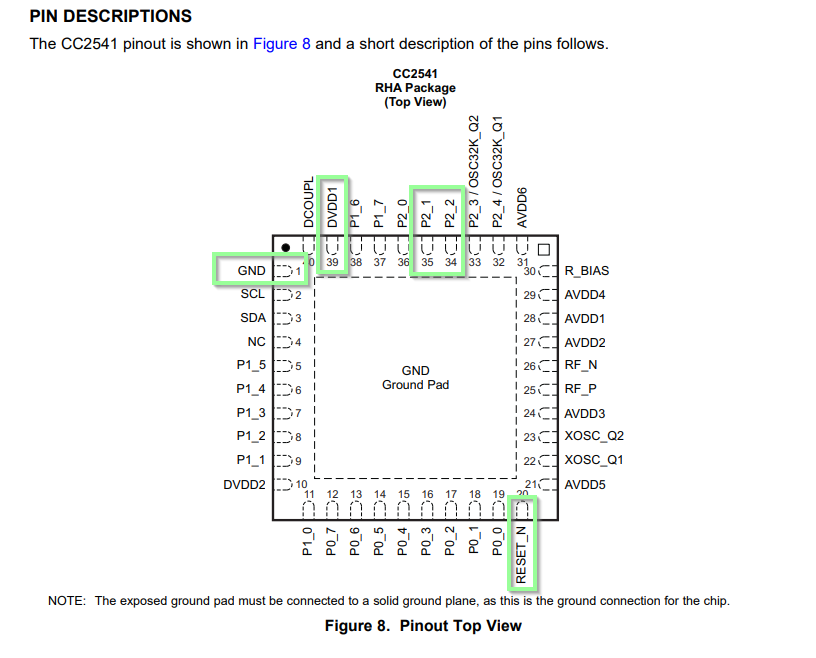 According to the documentation, if the device is powered externally, the following is required: Vdd (reference voltage) Ground DC (Debug Clock) DD (Debug Data) RESET: