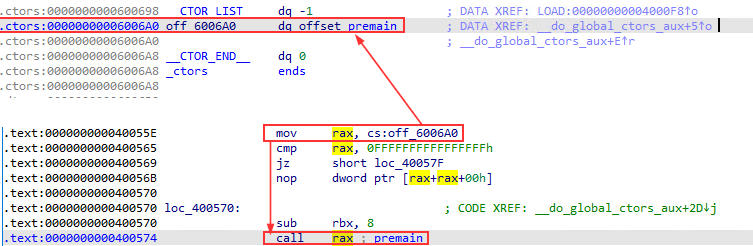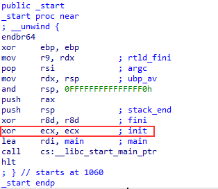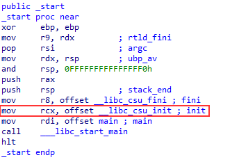 The alternative is to set the fourth argument, init, to the address of premain. As we will understand better in the next section, the difference here is that with init hijacked no other constructors will be run and other initialization routines (such as the auxiliary vector) which might be a consideration.